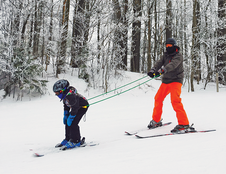 Slope Ropes is a new learn-to-ski aid for kids. It consists of one long rope that’s looped, with handles on opposite ends. One handle goes around the child’s waist, and the other is for the parent to steer with. The rope naturally rests at the child’s waist, and is said to encourage a forward, balanced stance—unlike the bad posture and backaches that can result with some harnesses and leashes. With just the handle, parents can gently guide their child through turns, speed checks, and provide tows on the flats. www.sloperopes.com