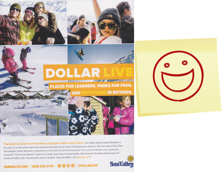 It’s easy to try to do too much on a single piece of collateral. This is especially true for billboards. Their placement gives passing drivers only a few, fleeting seconds to consume the message. Even so, billboards can be very effective when done right. SilverStar got it right with a billboard that simply read, “NEW GONDOLA, COMING JULY 2018.” No offers, no prices, no phone numbers—just a concise message that passersby could easily consume and remember. It also makes the most of the on-mountain investment SilverStar’s new lift represents. Could it have offered a discount or given directions or shared a web address? Sure, but it didn’t. And that’s exactly why I think it’s such a great message. —G.B