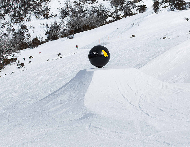 This year’s Torah Bright Mini Shred transition park, designed specifically for the grommets, took inspiration from the Bowly Down Under at Thredbo. The free, one-day event drew more than 300 kids, who got to to ride alongside of and get riding tips from Olympian Torah Bright and other pro snowboarders. The transition course allowed the pros to teach kids that park riding isn’t just about rails and jumps, but how to find the right line. For the build, the Thredbo parks crew spent eight machine hours in one snow cat and a three-tonne excavator. A team of five park staff spent a day and a half on hand-work polishing things up. A local artist spent a day and a half making snow sculptures, adding to the aesthetic of this fun kids’ event.