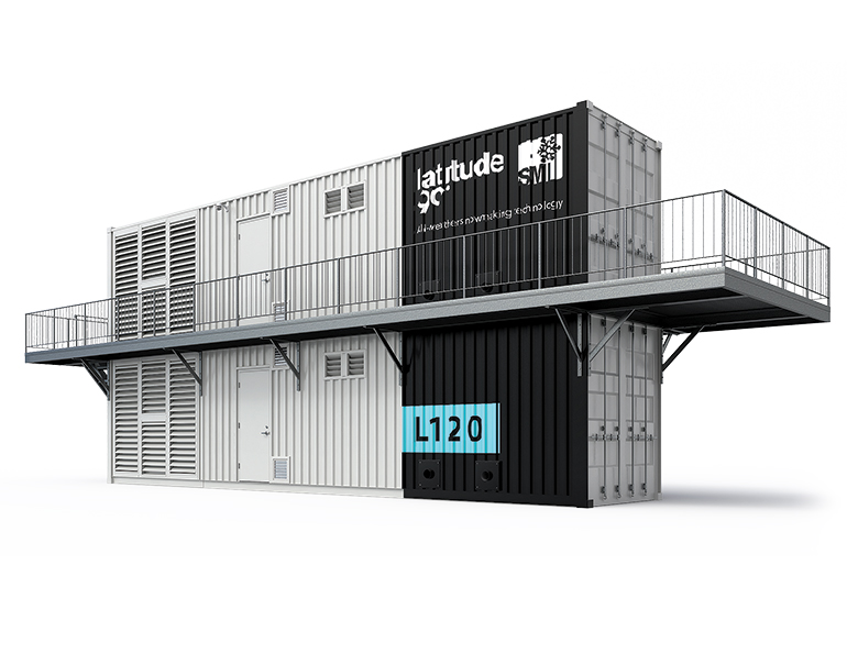 The L120 is the newest and largest all-weather snowmaking machine from SMI Snow Makers. It has four, 30-metric-ton flake-ice evaporators that can run independently or at the same time, all housed in an 8’ x 40’ footprint. Each evaporator can produce 60 cubic meters (78 cubic yards) of flake ice every 24 hours. The machine is equipped with an intuitive touchscreen, and allows for remote control via smartphone, computer, or tablet. A camera provides remote users a view of the snowmaking process and where the snow is piling up outside. The unit also comes with four separate discharge hoses that can send the snow up to 500 feet away from the unit. snowmakers.com